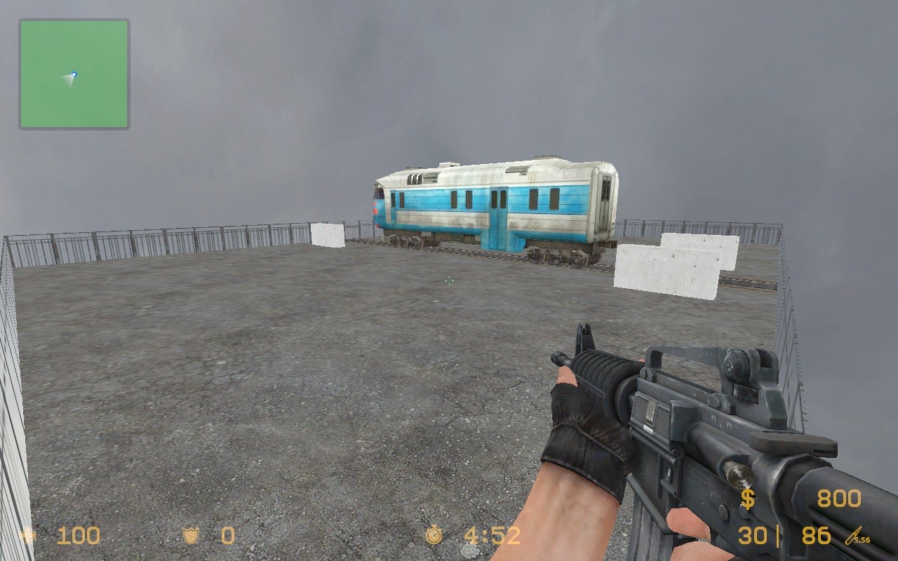 aim_m4a1_train - Это новая, небольшая, точнее очень маленькая карта для Counter-Strike Source. По названию понятно, что это за карта. Правильно, на респе Вы сразу получаете знаменитый автомат M4A1 и вперед в бой! Действие происходит где-то внигде, Вы находитесь на небольшой площадке, которую пополам пересекают рельсы, на которых стоит всего один единственный вагон. По площади карты раунды будут заканчиваться очень быстро, потому что здесь не где не сядешь, не где не скроешься. Думайте сами, качать Вам или нет. Установка: распаковать содержимое архива в папку cstrike Вашей игры